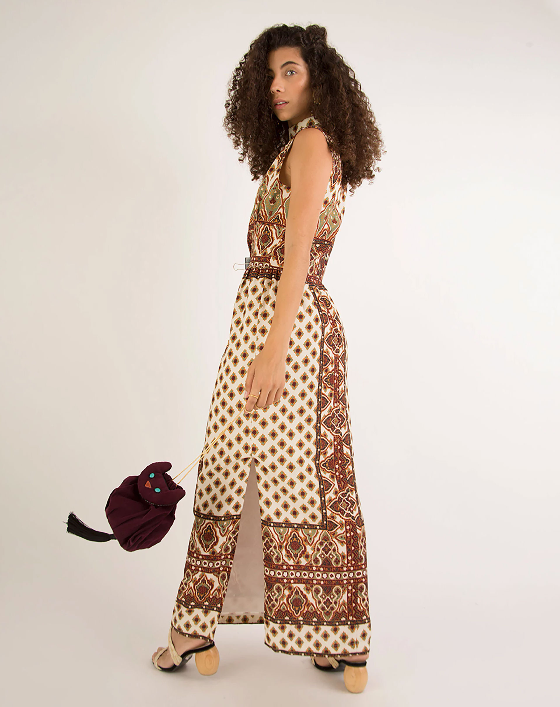 DescriçãoVestido em malha de poliéster com elastano. Modelo com decote V, mangas curtas e amplas, recorte abaixo do busto com franzido e recorte na cintura. Comprimento curto.