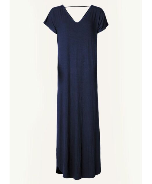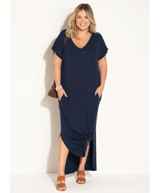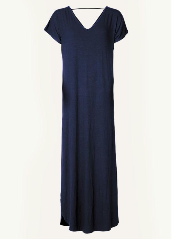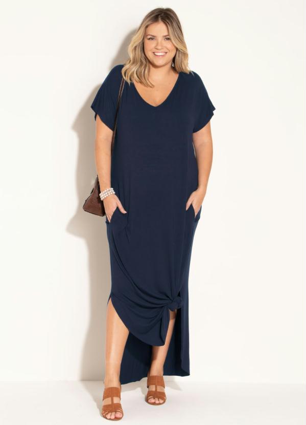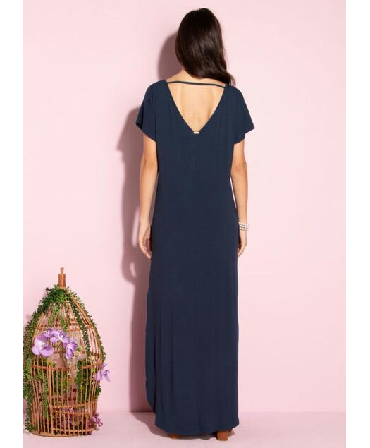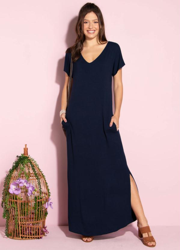 DescriçãoVestido em malha de viscose com elastano. Decote V e costas aprofundado com tira. Mangas curtas e barra arredondada com fendas laterais. Com bolsos na frente. Modelo soltinho. Comprimento longo.Modelagem: SoltoModelo: RetoComprimento da manga: CurtaComprimento: LongoDecote frente: VDecote costas: Aprofundado com tiraComplemento: Bolso frontal; fenda(s)Observação: Com bolsos!Tecido: MalhaComposição: 96%viscose 4% elastano